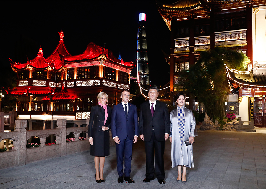 在前往北京前,5日晚,習(xí)近平主席和夫人彭麗媛在上海款待了馬克龍總統(tǒng)和夫人布麗吉特。地點(diǎn)是著名的江南古典園林——豫園。