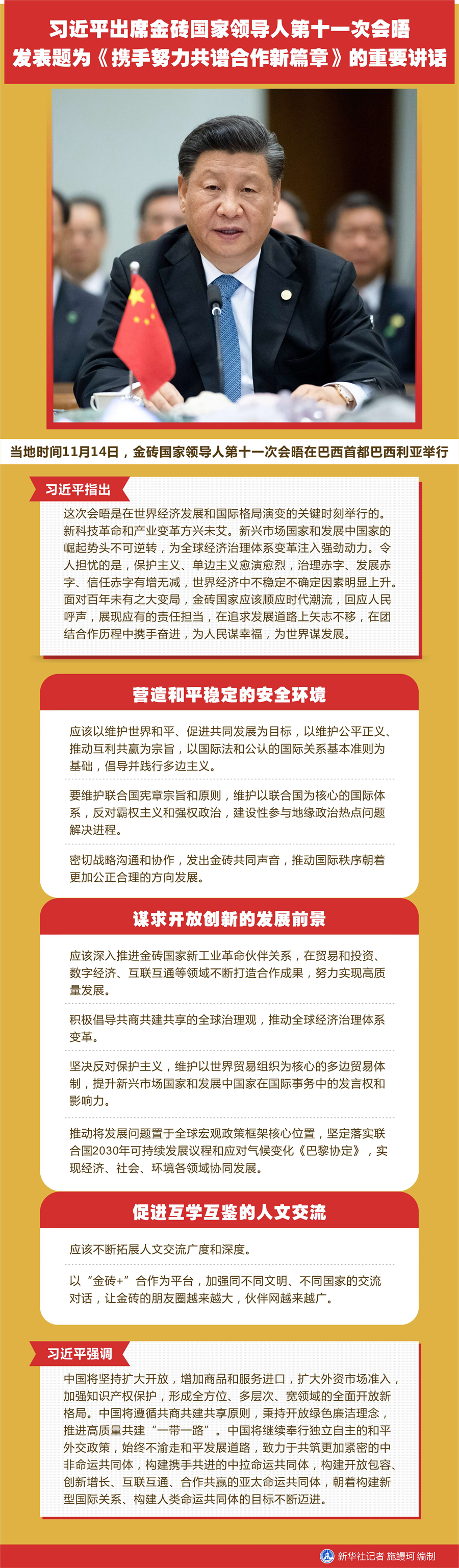 圖表:習(xí)近平出席金磚國家領(lǐng)導(dǎo)人第十一次會(huì)晤 發(fā)表題為《攜手努力共譜合作新篇章》的重要講話 新華社記者 施鰻珂 編制