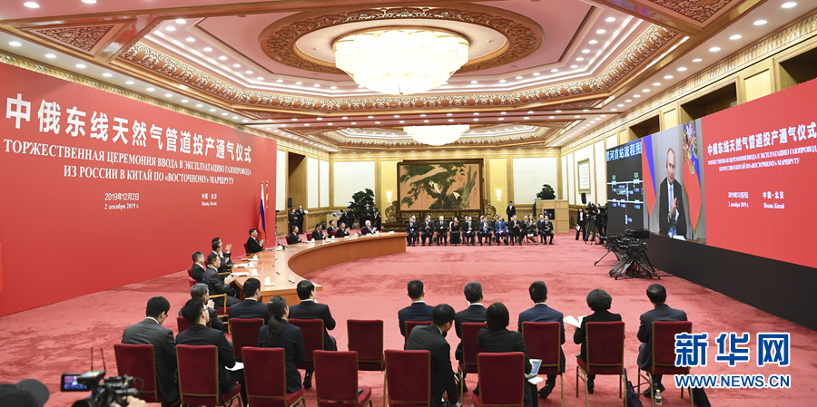 普京表示,在俄中兩國隆重慶祝建交70周年之際,俄中東線天然氣管道投產通氣具有重大歷史意義,將使兩國戰略協作達到新的高度。2014年我和習近平主席共同見證該項目合作文件簽署以來,雙方團隊在極端天氣下辛勤工作,如期完成了建設,未來30年里俄方將向中方供應1萬億立方米天然氣,這將有助于落實我和習近平主席達成的在2024年將俄中雙邊貿易額提升至2000億美元的共識。俄方愿與中方共同努力,確保這一標志性戰略合作項目順利實施。