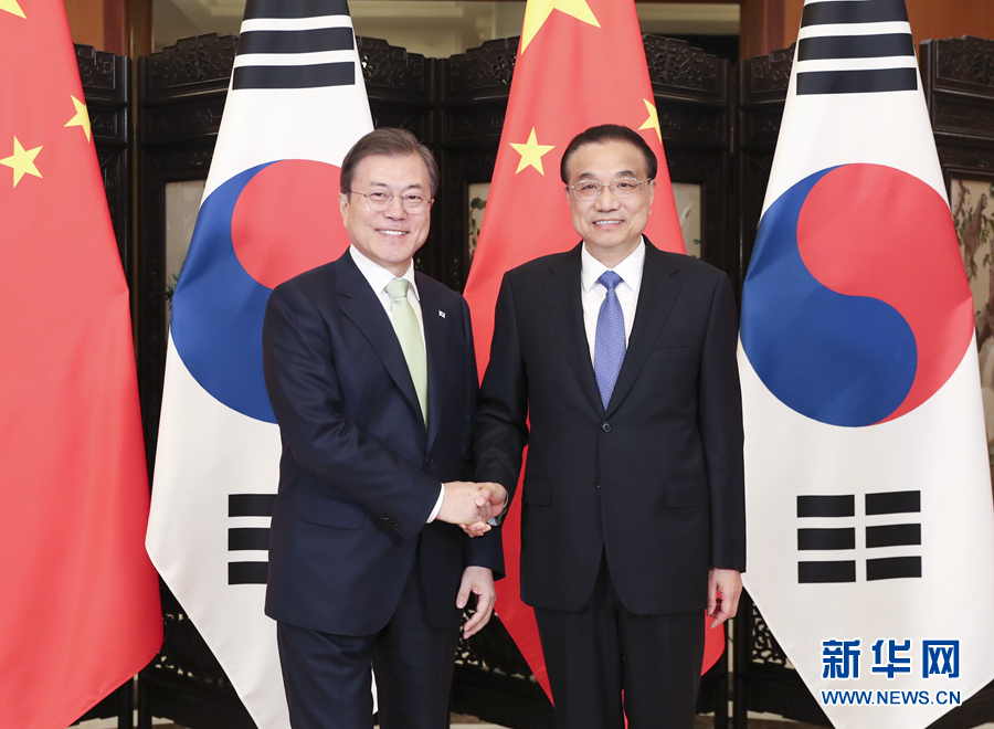 12月23日,國務院總理李克強在四川成都會見出席第八次中日韓領導人會議的韓國總統文在寅。新華社記者 丁海濤 攝