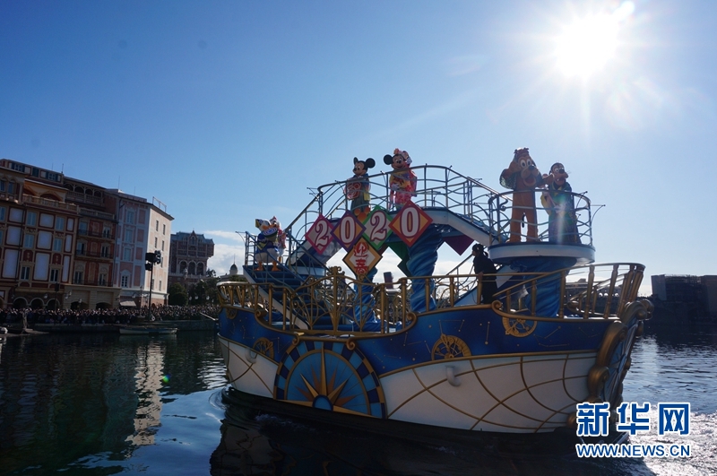 1月1日,在日本東京迪士尼海洋樂園,裝扮成迪士尼卡通人物的演員在新年巡游上表演。楊汀 攝