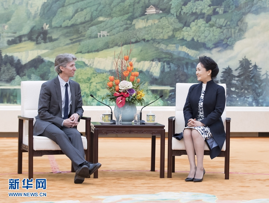 1月8日,國家主席習(xí)近平夫人彭麗媛在北京會見美國茱莉亞學(xué)院院長沃澤爾。 新華社記者 王曄 攝