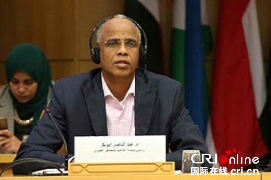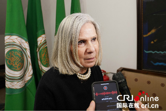 阿盟社會事務(wù)助理秘書長海法·阿卜·加扎拉接受記者采訪