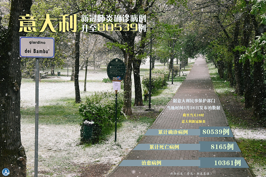 新華社羅馬3月26日電(記者李潔)據意大利民事保護部門26日發布的數據,截至當天18時,意大利累計新冠肺炎確診病例升至80539例,累計死亡病例8165例,治愈病例10361例。