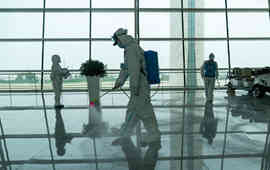 武漢天河機場為復航開展消殺作業
