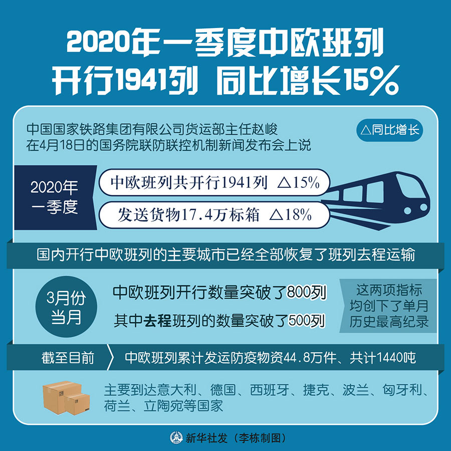 新華社北京4月18日電(記者王希、于文靜)中國(guó)國(guó)家鐵路集團(tuán)有限公司貨運(yùn)部主任趙峻在18日的國(guó)務(wù)院聯(lián)防聯(lián)控機(jī)制新聞發(fā)布會(huì)上說,今年一季度,中歐班列共開行1941列,發(fā)送貨物17.4萬標(biāo)箱,同比分別增長(zhǎng)15%和18%。