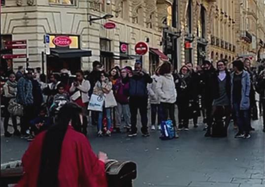中國(guó)姑娘彭靜旋,為讓更多人了解中國(guó)傳統(tǒng)音樂(lè),在法國(guó)街頭演奏古箏,吸引了眾多外國(guó)友人駐足觀看。