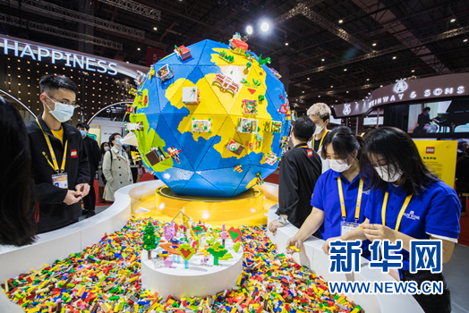 在樂高展區,參觀者置身其中,仿佛回到了童年。新華網 發