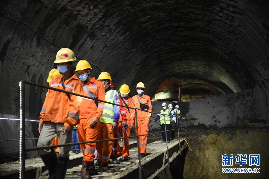 11月15日,施工人員走在印度尼西亞西爪哇省的雅萬高鐵7號(hào)隧道內(nèi)。新華社發(fā)(祖卡南 攝)