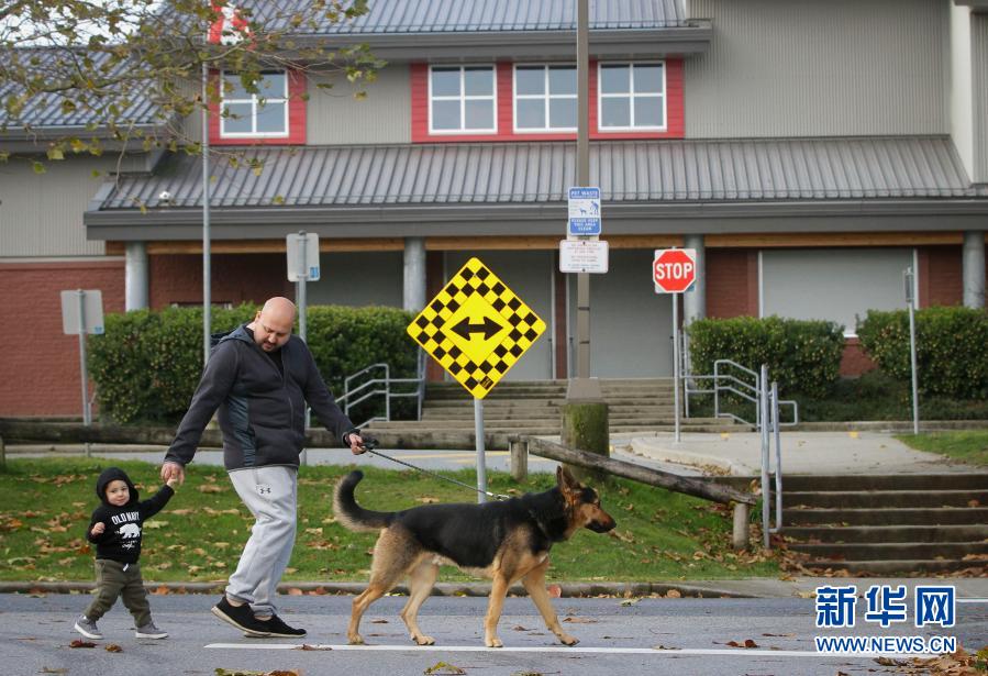 11月15日,在加拿大不列顛哥倫比亞省薩里,居民從一所因出現(xiàn)新冠疫情關(guān)閉的學(xué)校前走過。新華社發(fā)(梁森攝)
