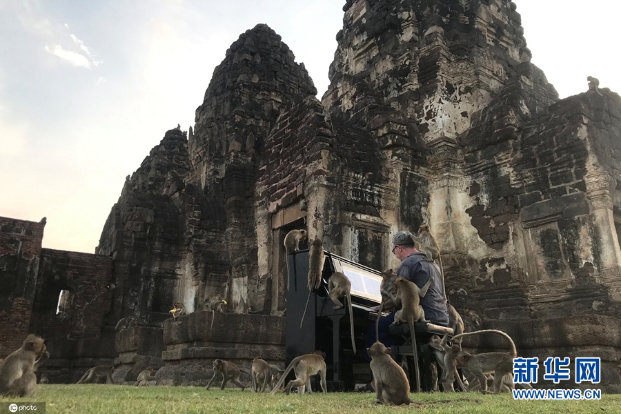 11月21日,泰國(guó)華富里府,英國(guó)鋼琴家保羅·巴頓(Paul Barton)為一群猴子彈鋼琴。演奏過(guò)程中,多只猴子在他周圍跑來(lái)跑去,有幾只還爬上了鋼琴,甚至在他的頭頂跳來(lái)跳去。巴頓稱,這場(chǎng)特殊的音樂會(huì)旨在引起人們對(duì)這群饑餓的猴子的重視。(圖片來(lái)源:東方IC)