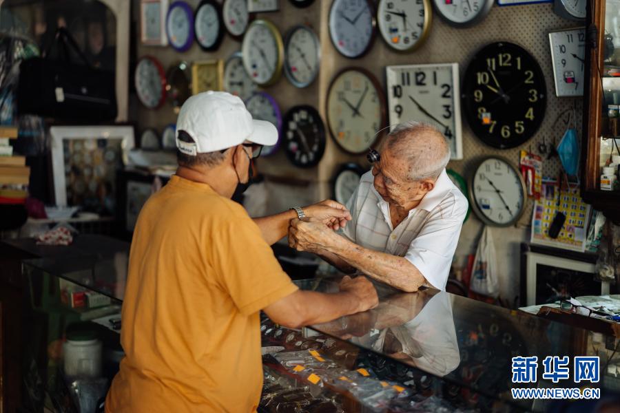 12月5日,在馬來西亞雪蘭莪州巴生的郁昌表行,韋華為顧客佩戴修好的手表。新華社記者 朱煒 攝