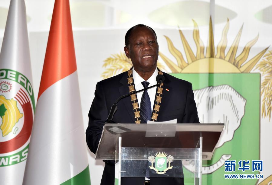 12月14日,在科特迪瓦阿比讓,瓦塔拉宣誓就職后發表演講。新華社發(伊萬·宋攝)