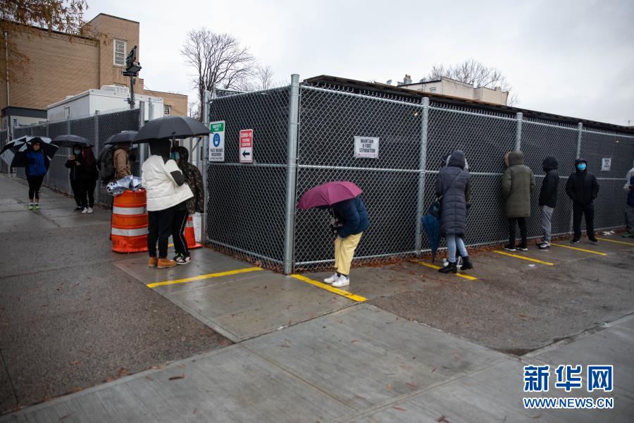 12月14日,在美國紐約,人們在一處新冠檢測點排隊檢測。新華社發(fā)(郭克 攝)