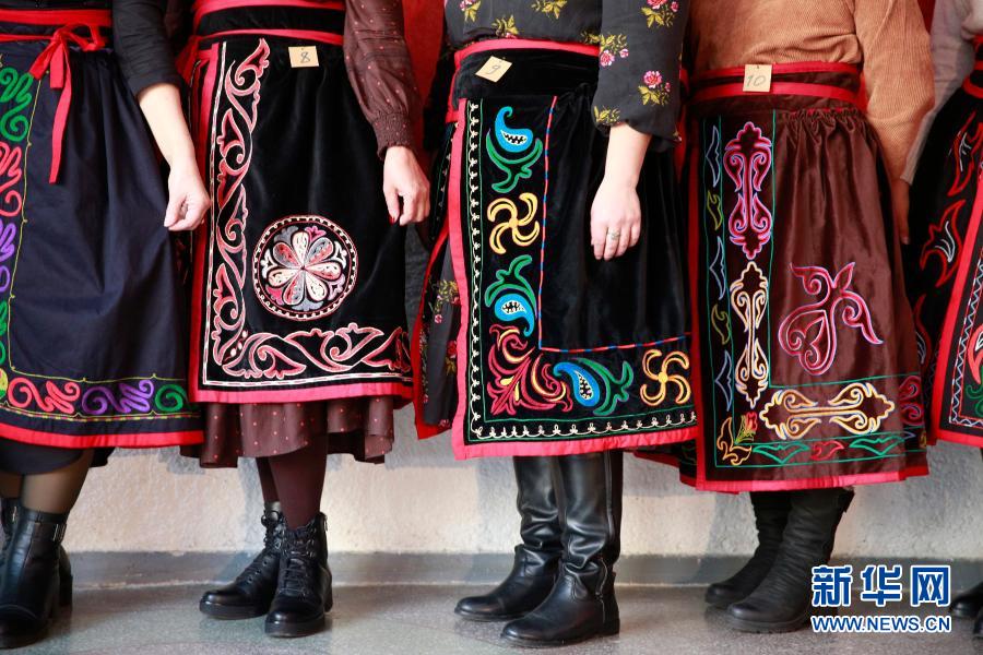12月24日,在吉爾吉斯斯坦首都比什凱克,人們身著裙袍參加比賽。新華社發(羅曼 攝)
