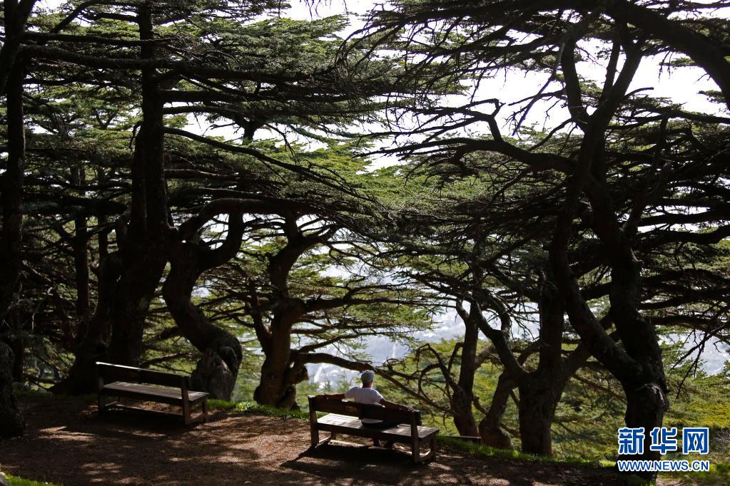 4月18日,一名男子坐在黎巴嫩舒夫保護區雪松樹下休息。