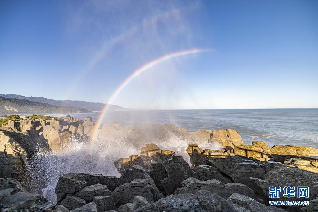 這是5月25日在新西蘭普納凱基拍攝的薄餅巖。