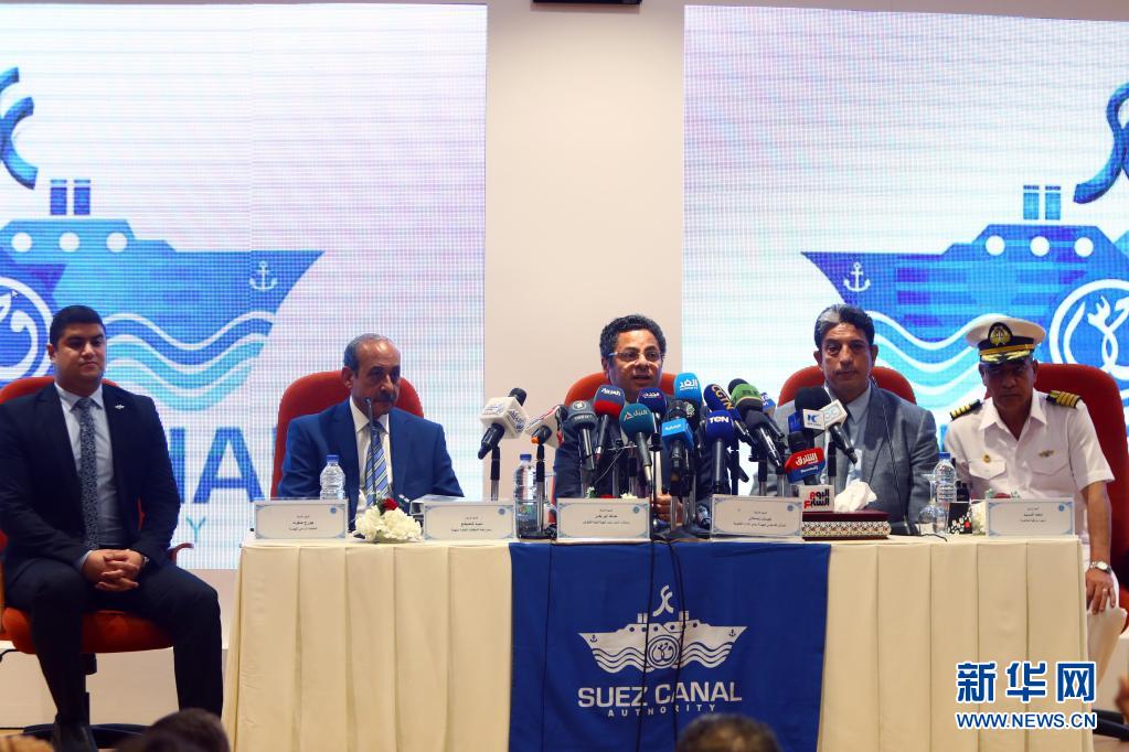 5月30日,在埃及東北部城市伊斯梅利亞,蘇伊士運河管理局就“長賜”號貨輪擱淺事故調查結果召開新聞發(fā)布會。