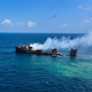 6月2日,斯里蘭卡總統戈塔巴雅下令將起火貨船“X-PRESS PEARL”號拖向遠離科倫坡港的深海區,以防引發更大的環境災難?!癤-PRESS PEARL”號貨船5月20日抵達科倫坡港西北約9.5海里錨地時發出火警求救信號。斯里蘭卡海洋環境保護局官員5月28日表示,在科倫坡港附近起火燃燒的“X-PRESS PEARL”號貨船預計將會引發嚴重環境災難。新華社發(斯里蘭卡空軍媒體處供圖)
