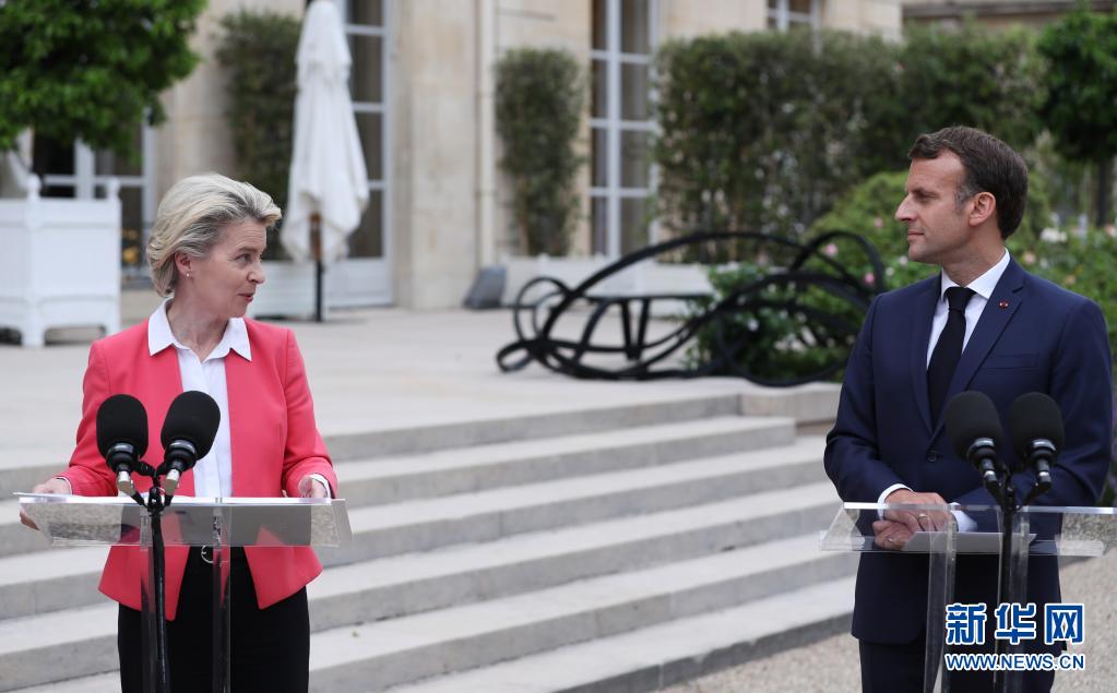 6月23日,法國總統馬克龍(右)與歐盟委員會主席馮德萊恩在巴黎總統府愛麗舍宮出席新聞發布會。