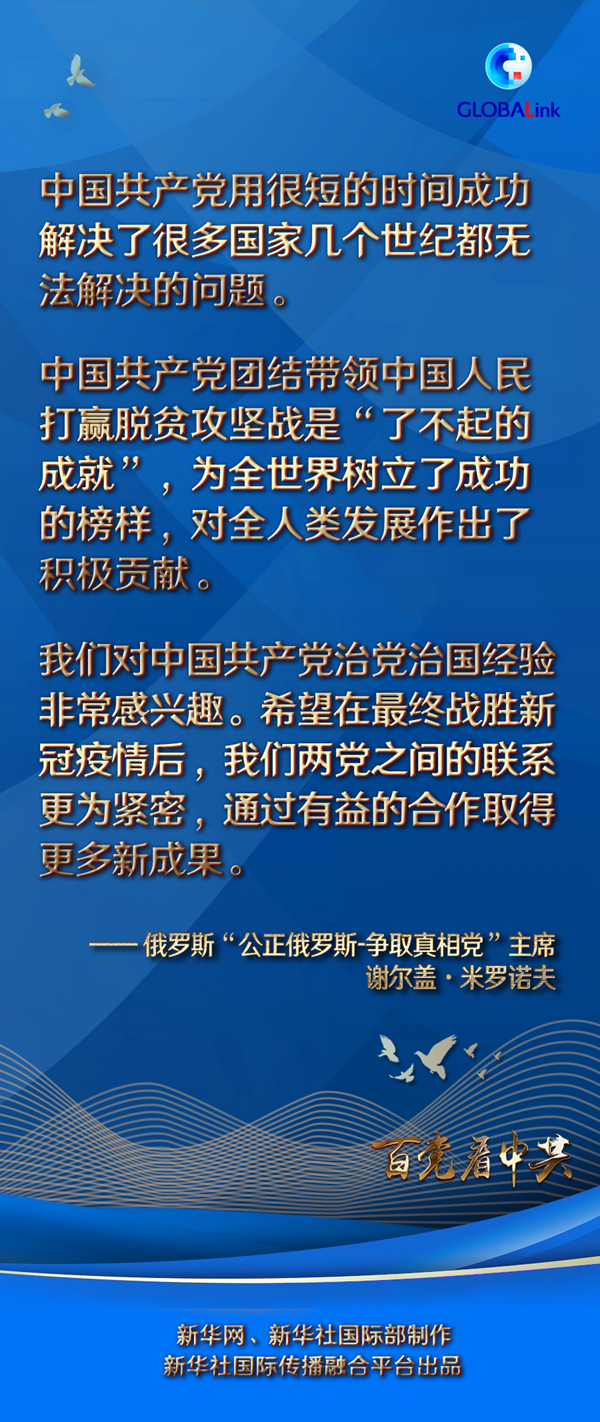 米羅諾夫說,中國共產黨團結帶領中國人民打贏脫貧攻堅戰是“了不起的成就”,為全世界樹立了成功的榜樣,對全人類發展作出了積極貢獻。
