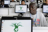 記者在聯合國氣候變化大會新聞中心處理稿件