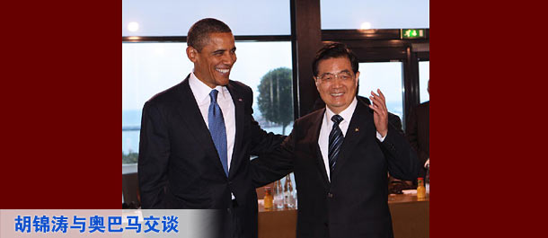 胡錦濤與奧巴馬交談